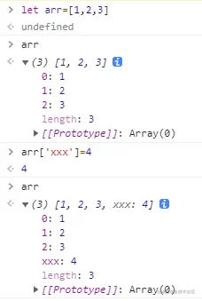 为什么一开始数组有三个元素分别为1,2,3,length为3,后来又添加了一个下标为'xxx'字符串,值为4的元素,length还是3呢?