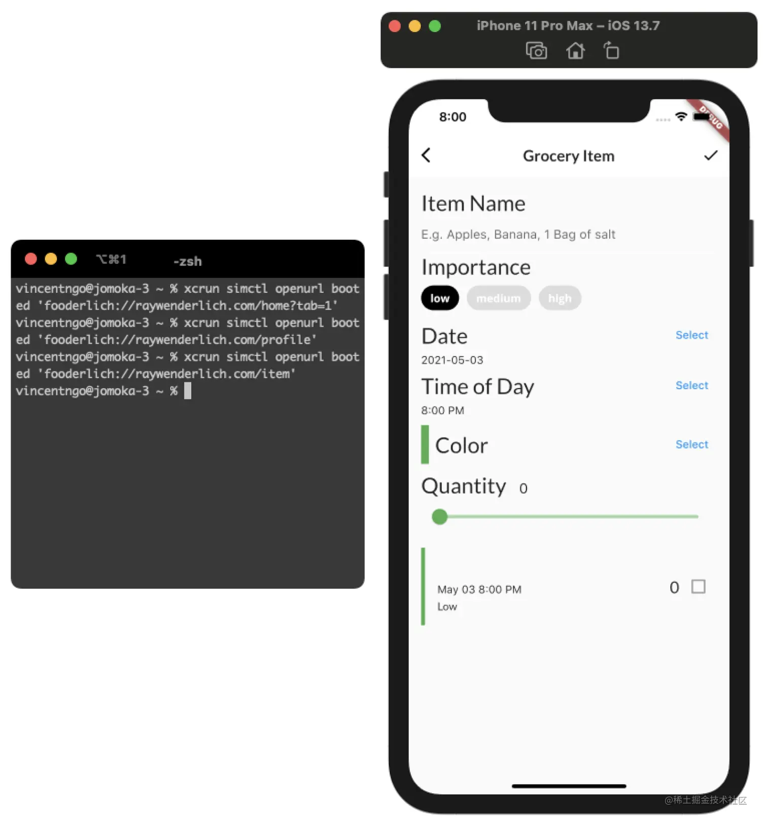 xcrun simctl openurl booted 'fooderlich://raywenderlich.com/item' 。