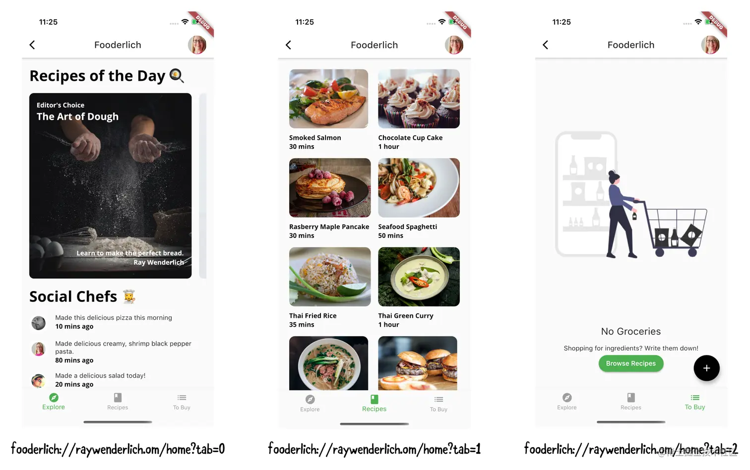 当涉及到你可以深度链接到Fooderlich的哪个屏幕时,你有很多选择。以下是你可以将你的用户重定向到的所有可能的路径。