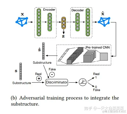 3.如何把子结构的信息表示出来?自编码器保留全局的结构信息。子结构检测器。对抗的训练器融合子结构正则化项。