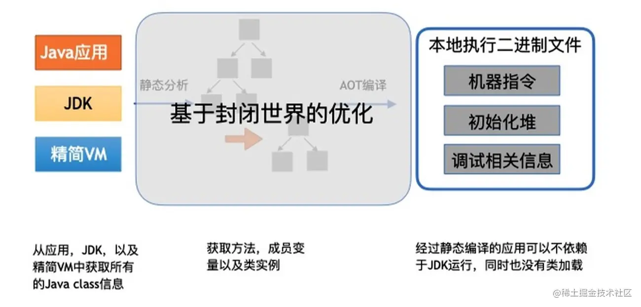 GraalVM提供的静态编译功能,只能针对其编译时能够看得的封闭世界进行优化,对于那些使用了反射、动态加载、以及动态代理的代码是无能为力的。
