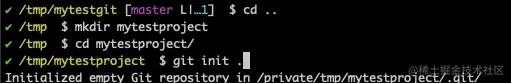 ✔ /tmp/test_git_objects $ git init . # 初始化git
