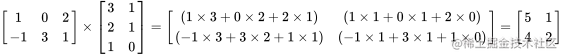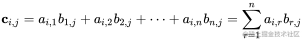 补充 两个矩阵的乘法仅当第一个矩阵A的列数和另一个矩阵B的行数相等时才能定义。如A是m×n矩阵和B是n×p矩阵,它们的乘积C是一个m×p矩阵