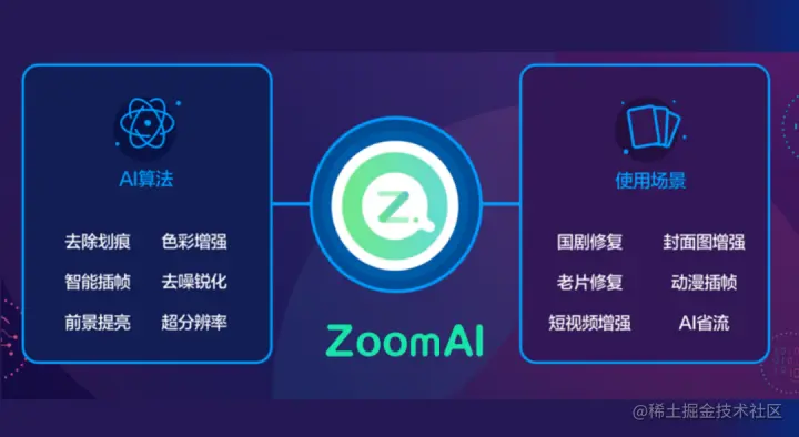 ZoomAI是爱奇艺基于人工智能的视频修复及增强系统,包含超分辨率、智能插帧、划痕修复、色彩增强、人脸重建、黑白上色等多个维度的自研算法。这些算法模块相互解耦,可自由搭配,对图像/视频进行全方位的修复增强。