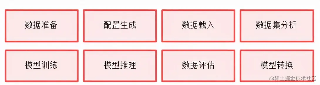 - 操作解耦:问题分析:一般在模型训练时候数据处理、模型训练和效果的评估往往是耦合的,这样导致训练时需要按照耦合的流程进行训练,使用相同数据训练时需要不断重复处理数据,模型训练和效果评估不能同时进行,评估过程占用训练时间和资源导致无法高效执行。现有框架一般是基于固定的学术数据集进行训练,在训练到指定时间进行模型评估。改进点:我们将主要功能切分为八个模块,可使用八个模块构建需要的流程,流程构建过程灵活。本框架模块之间是相互独立的,可以独立高效执行。