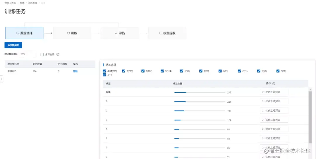 数据准备模块算子包括类别扩增、类别屏蔽、子图切割、异常数据清洗、数据集划分等算子。以类别扩增为例,如图6所示,在阿里云的智能工业·工业视觉智能的平台上,可以针对指定标签进行扩充且扩充倍数可选择(如图9所示)。
