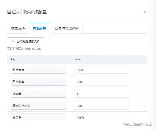 图14:平台模型训练高级参数配置示意图