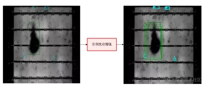 - 数据载入模块的第二步是构建数据载入流程。如图16所示是数据载入的一些操作算子集合。数据载入流程根据配置信息从操作算子中选择相应算子并串联形成操作流程。数据载入模块有两种状态(目前工业视觉智能云平台未开启此功能)。分别是运行状态和调试状态。运行状态与其他模块无交互。图16中的效果可视化在调试状态时使用,在数据载入流程的任何位置可以嵌入效果可视化模型,用来可视化当前图像状态、类别状态、实例状态。这样就可以查看数据处理或数据增强的效果,确认单步数据处理效果和多部数据处理的叠加效果。图17所示为实例扰动增强操作可视化的效果,可视化时将实例相关信息“画”在图像上,不同类别用不同颜色表示。每个框代表一个实例。经过实例扰动增强后,可以直观看到实例的增加和实例在图像中的情况。