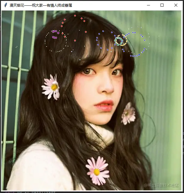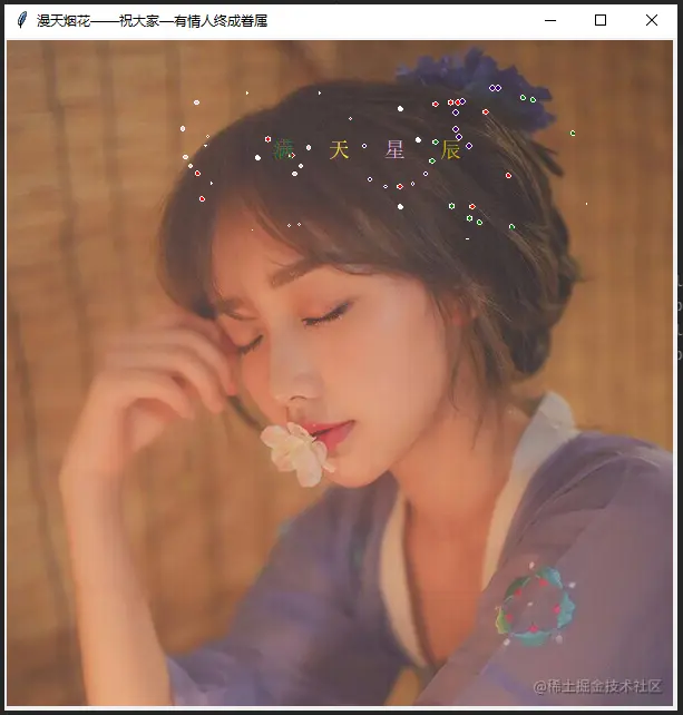 root.title('漫天烟花——祝大家—有情人终成眷属') # 设置窗体的标题栏