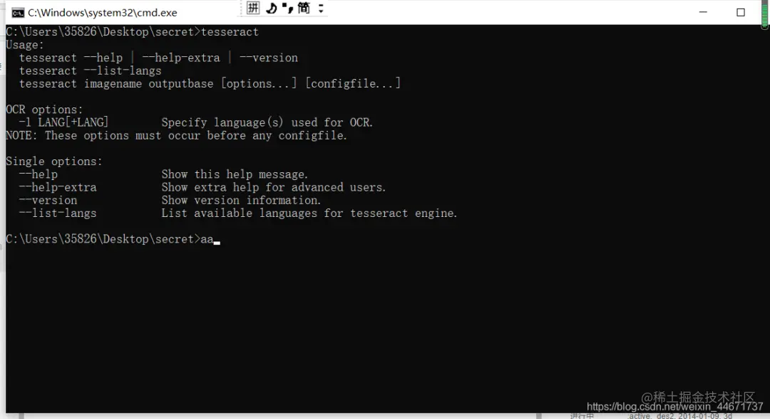 使用tesseract指令,显示如下: