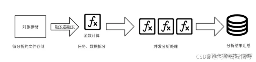 通常要对大数据进行处理,需要搭建 Hadoop 或者 Spark 等相关大数据的框架,同时要有一个处理数据的集群。通过 Serverless 技术,只需要将获得到的数据不断的存储到对象存储,并且通过对象存储相关触发器触发数据拆分函数进行相关数据或者任务的拆分,然后再调用相关处理函数,处理完成之后,存储到云数据库中。