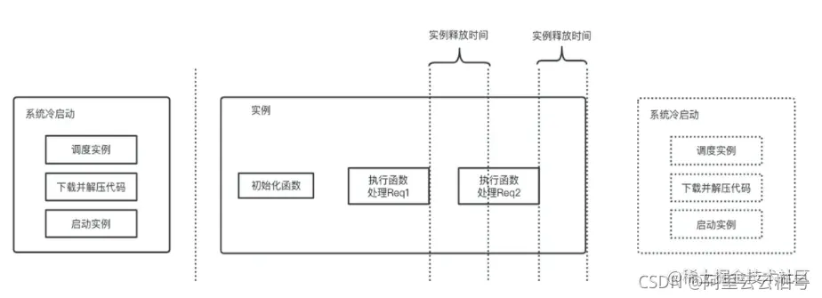 - 不存在空闲且可以直接复用的实例:冷启动。