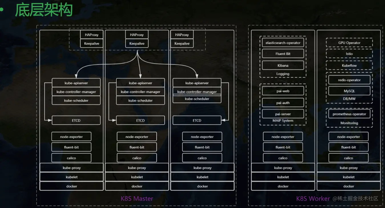 整个中台构建在 Kubernetes 之上,在引入 KubeSphere 之前大致长这样,三主多从。