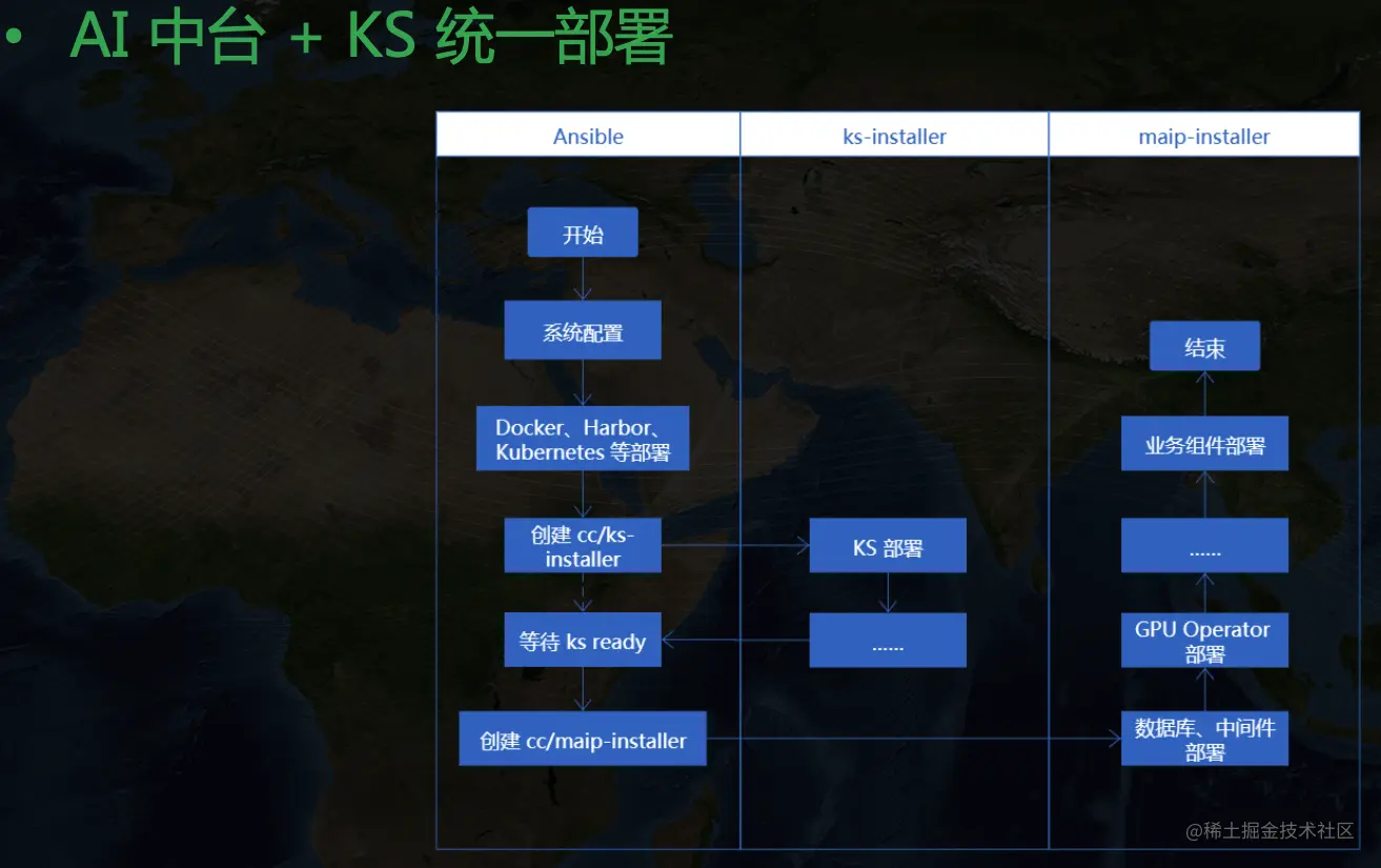 - 执行前置部署流程(K8s 版本检查、ks-core 等不可或缺组件部署等)