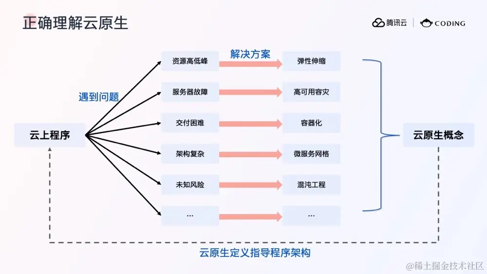 云原生的概念其实并不是被某行业大佬从计算机行业发展理论,或者任何哲学逻辑推导出来的,而是在服务器软件的开发、运行、维护过程中遇到了很多问题,在解决这些问题的过程中不知不觉形成的。而不是反过来先有权威定义概念,行业再遵照概念去实践。