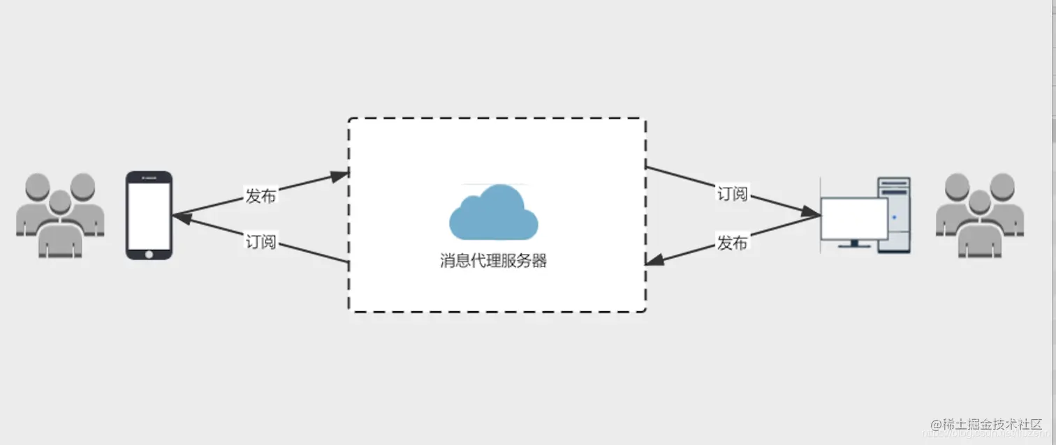MQTT工作模式是基于客户端和服务端通讯模式运作的,在整个通讯过程中,有三种身份:发布者(Publisher)、代理服务器(Broker)、订阅者(Subscriber)。其中,消息的发布者和订阅者都是客户端,它们之间的消息是通过代理服务器转发的,消息发布者可以同时是订阅者。