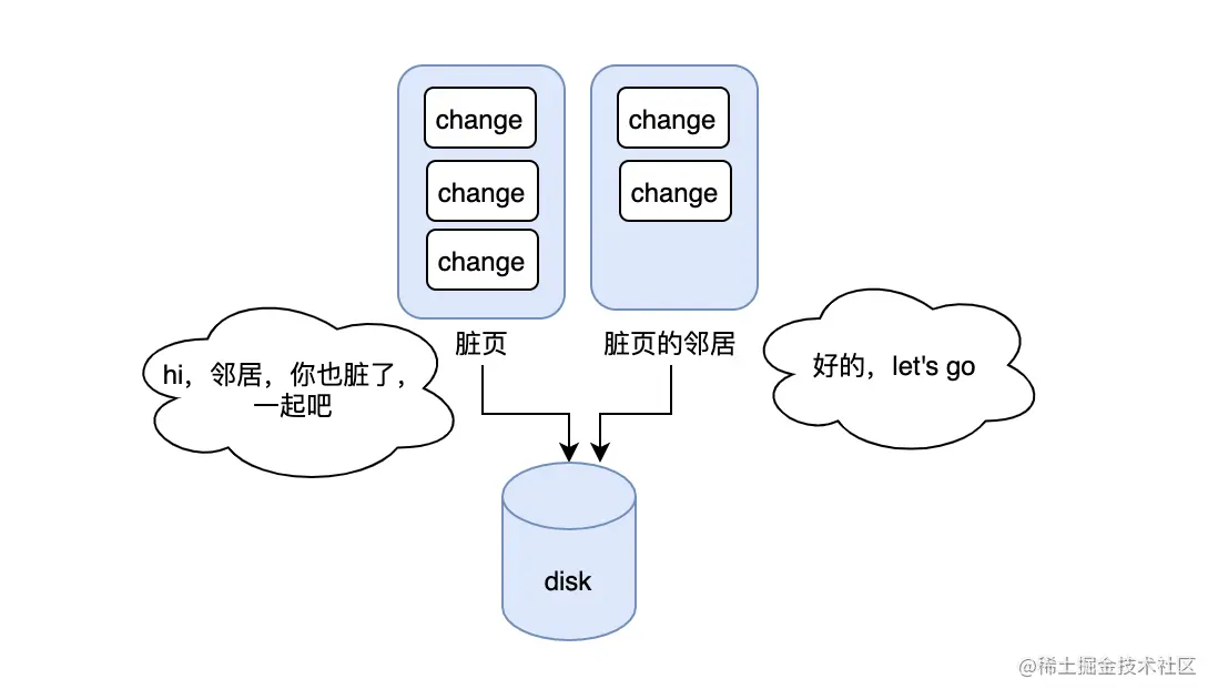 在脏页刷盘的过程中,InnoDB这里有个优化:如果要刷的脏页的邻居页也脏了,那么就顺带一起刷,这样的好处就是可以减少随机IO,在机械磁盘的情况下,优化应该挺大,但是这里可能会有坑,如果当前脏页的邻居脏页在被一起刷入后,邻居页立马因为数据的变更又变脏了,那此时是不是有种多此一举的感觉,并且反而浪费了时间和开销。更糟糕的是如果邻居页的邻居也是脏页...,那么这个连锁反应可能会出现短暂的性能问题。