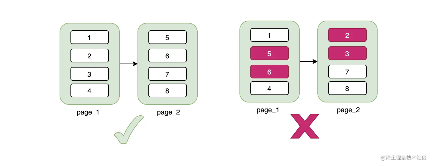 也许你会好奇,这和我们说的身份证号当主键ID有什么关系?这时你应该关注连续这个关键字,身份证号不是连续的,这意味着什么?当我们插入一条不连续的数据的时候,为了保持连续,需要移动数据,比如原来在一页上的数据有1->5,这时候插入了一条3,那么就需要把5移到3后面,也许你会说这也没多少开销,但是如果当新的数据3造成这个页A满了,那么就要看它后面的页B是否有空间,如果有空间,这时候页B的开始数据应该是这个从页A溢出来的那条,对应的也要移动数据。如果此时页B也没有足够的空间,那么就要申请新的页C,然后移一部分数据到这个新页C上,并且会切断页A与页B之间的关系,在两者之间插入一个页C,从代码的层面来说,就是切换链表的指针。