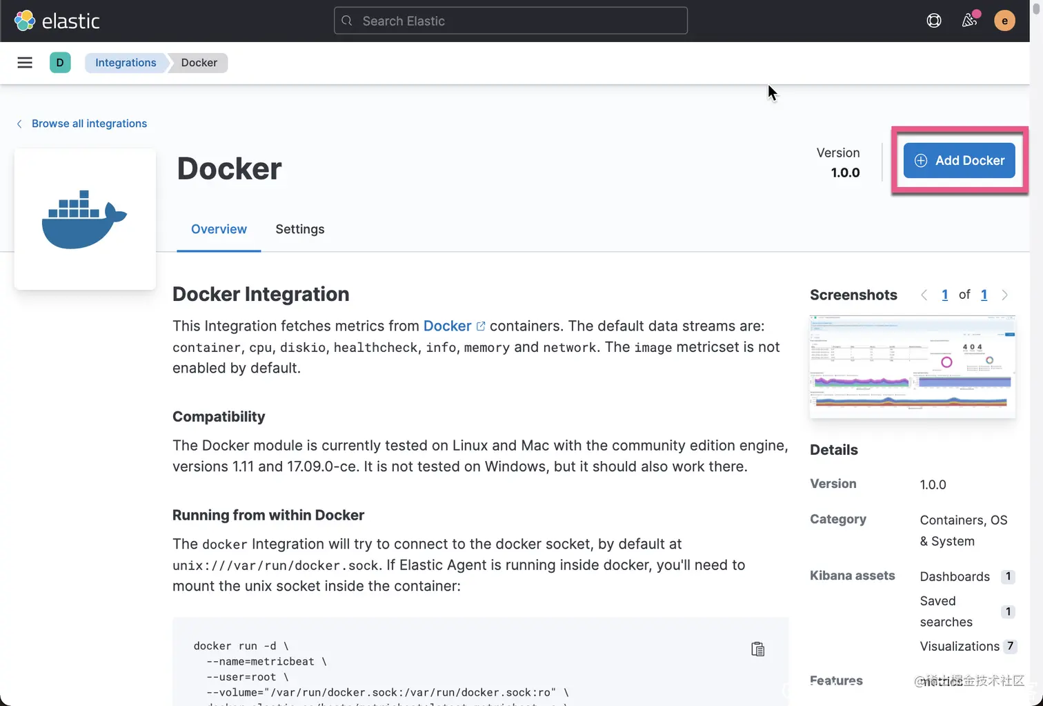 这样就完成了对 Docker integration 的添加: