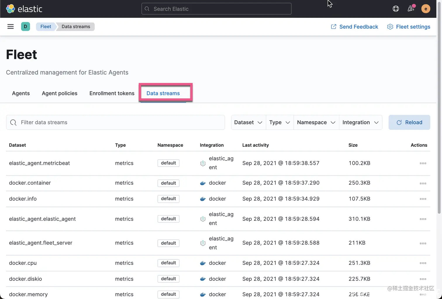 我们接着点击 Data streams。我们可以看到不同的 data streams: