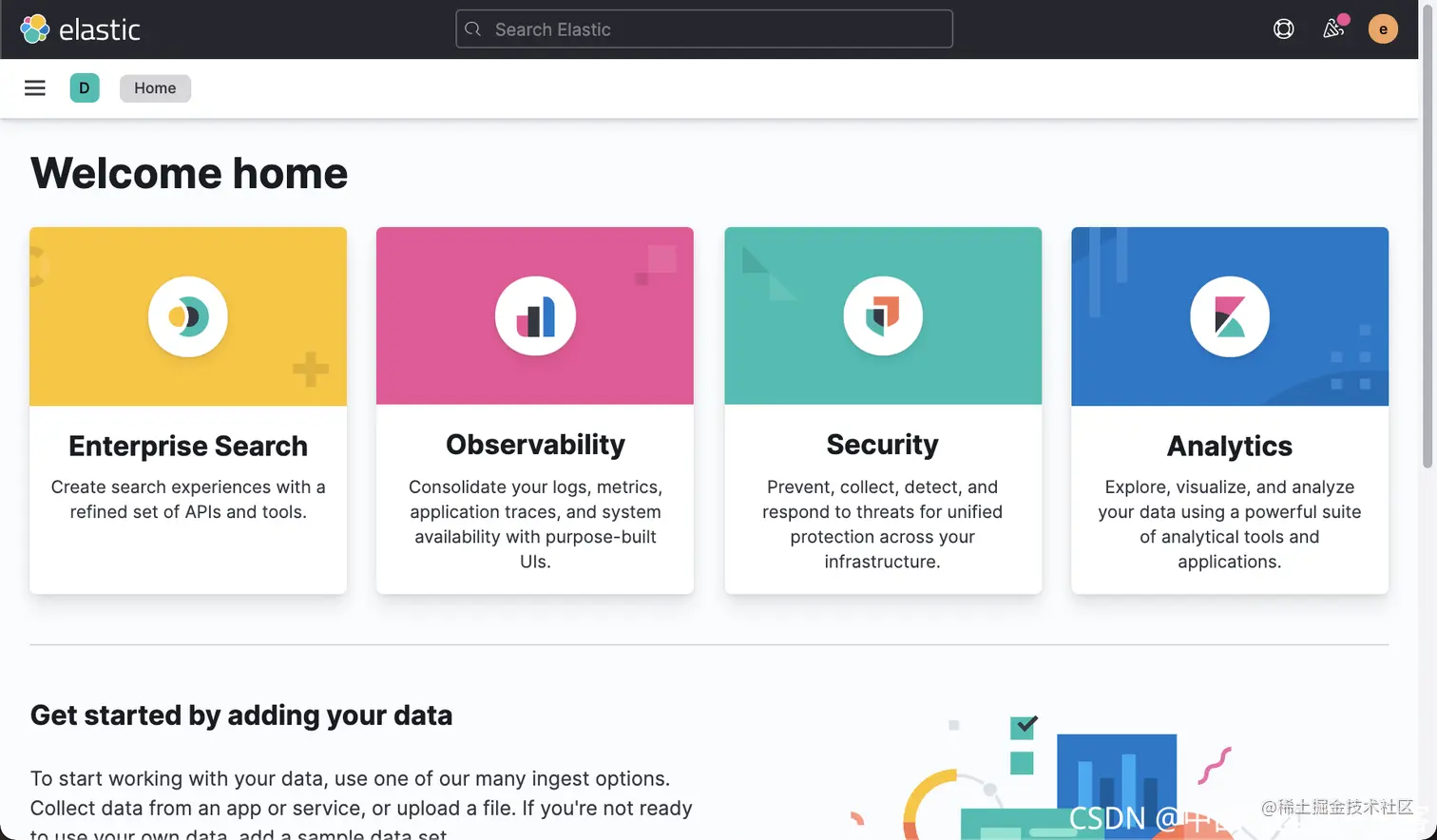 等 Kbana 完全运行起来后,我们可以在本地的浏览器中启动地址 http://localhost:5601/。我们使用 elastic 用户及在上一步创建的 Elasticseach 密码 DbYlkm3zhuqpfRJ05O8Y 来进行登录: