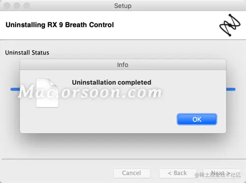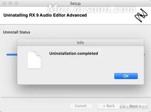 提示“Uninstallation completed”即成功卸载iZotope RX 9mac版,点击“OK”即可,如下图: