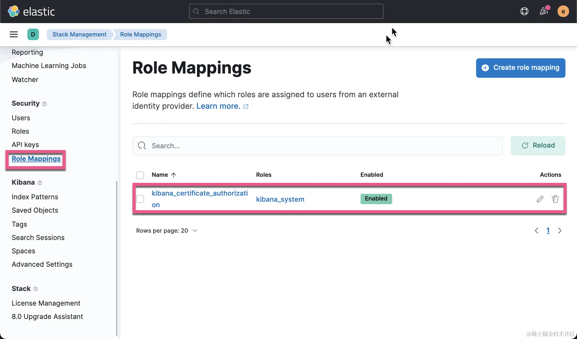 请注意,roles 值当前为空,这意味着尽管我们已通过 Elasticsearch 的身份验证,但我们无权执行任何操作。 身份验证是允许的,因为我们发送到集群的客户端证书是由与 Elasticsearch 节点使用的 http TLS/SSL 证书相同的 CA 签署的。 现在我们已经通过身份验证,我们需要授权这个用户能够做一些事情。