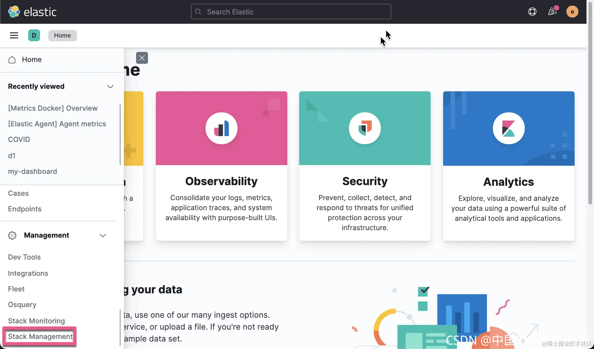 或者在 Kibana 的界面中,按照如下的步骤来进去启动:
