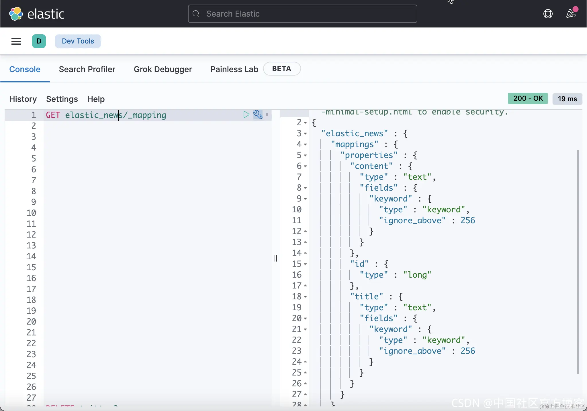 我们可以在 Kibana 中查看我们的文档的 mapping:
