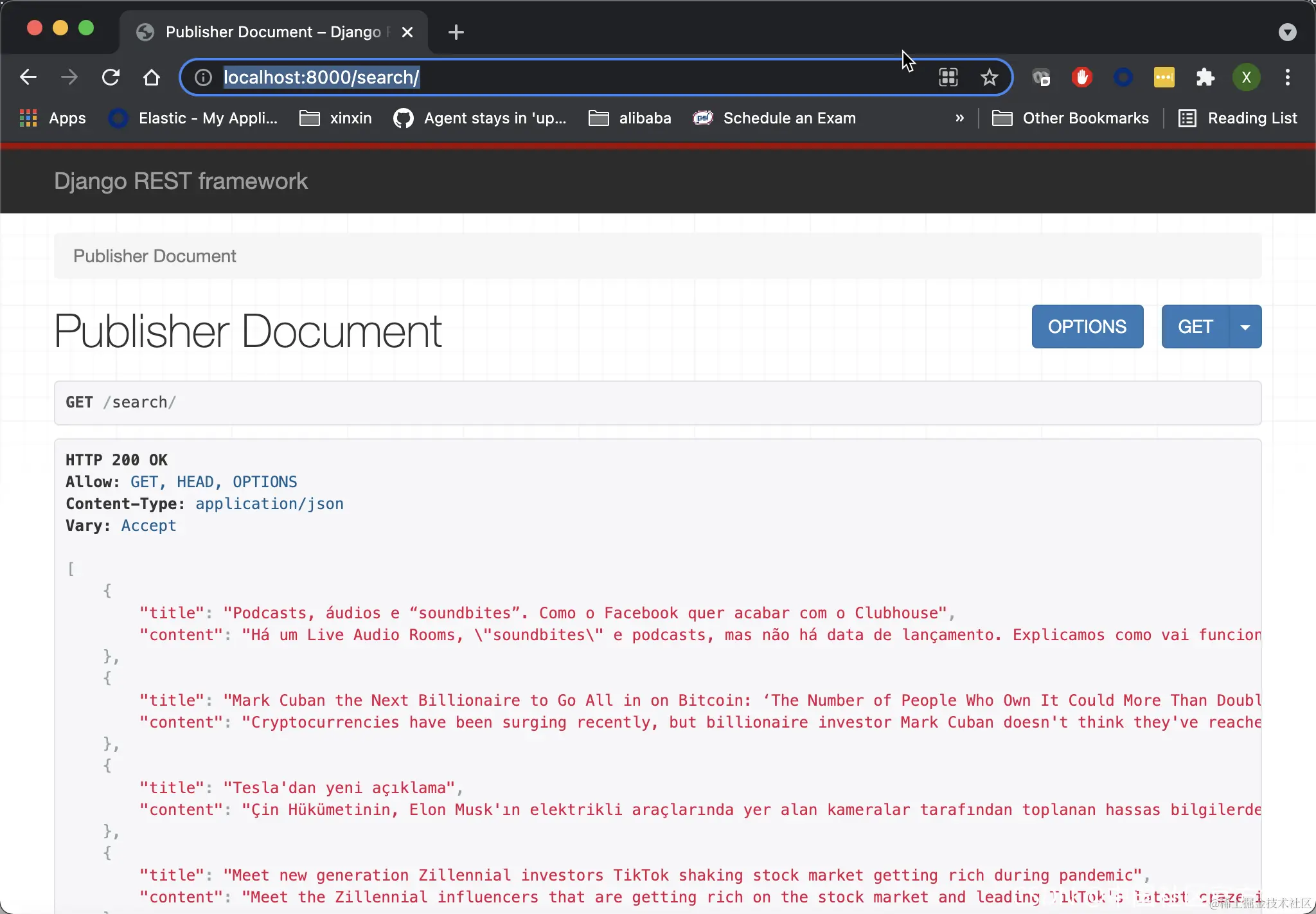 接下来,我们来修改在 News app 下的 views.py 文件,以便能在访问页面时生产相应的 Elasticsearch 文档: