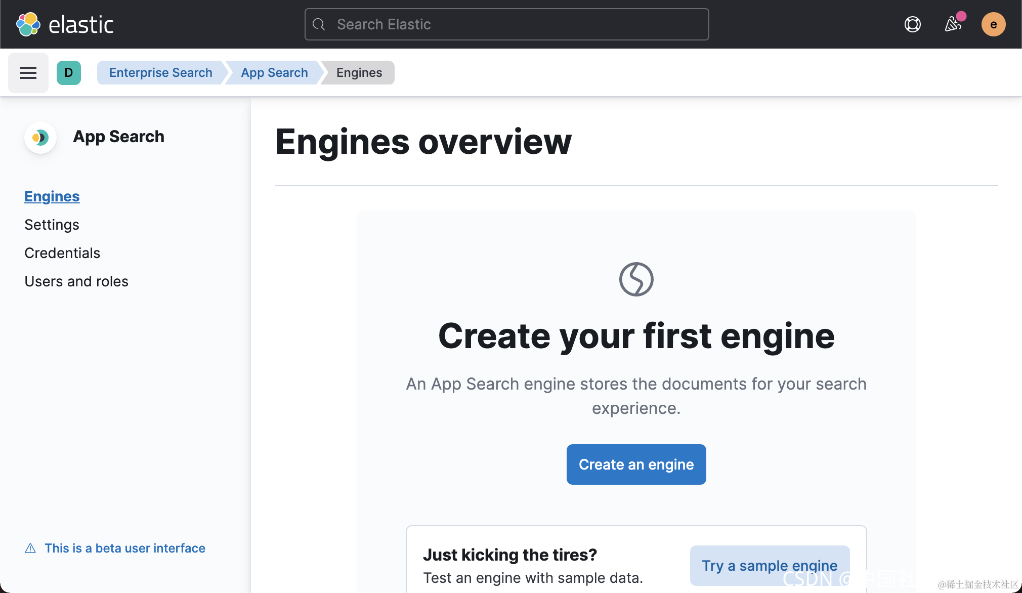 也就是说,我们可以直接从 Kibana 中来创建 engine,而不用访问 http://localhost:3002。