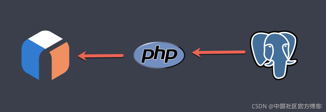 如上所示,在实际的使用中,我们的数据文档被保存一下一个数据库,比如 Postgres 数据库中。我们可以通过 PHP 客户端把里面的数据提前处理,并导入到 App Search 中。