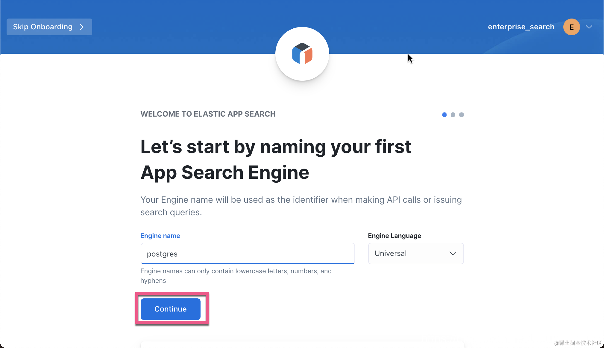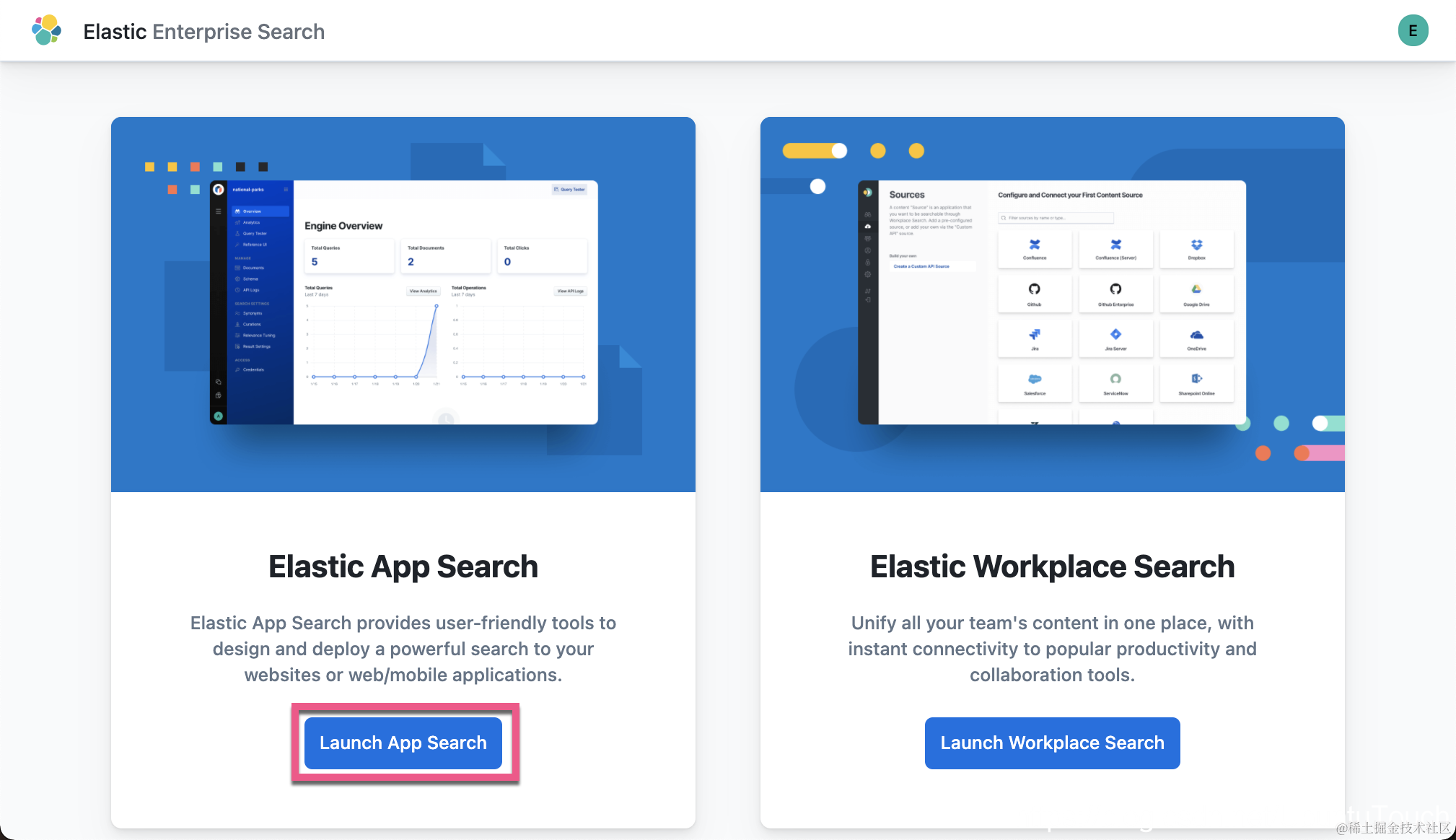 我们为 App Search 应用创建一个 engine。我们点击如上所示的 Launch App Search: