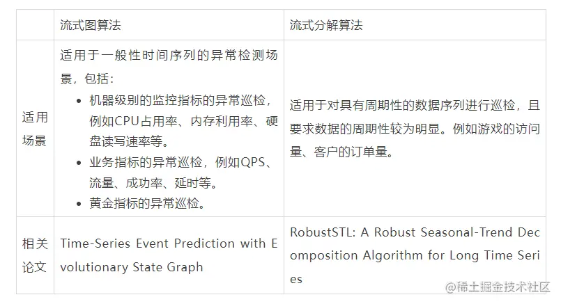 目前异常检测我们使用了两种算法,它们的比较如下:
