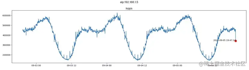 在一些数据波动比较大,指标没有固定阈值的场景下(例如用户访问量、外卖订单量等),智能巡检的优势可以得到很好的体现。例如下图,指标本身呈现出周期性的波动,假如一个新版本上线了之后,由于bug导致网络流量异常抖动。如果基于固定阈值来判断,此时处于指标值的上下界范围内,就很难发现问题;但是基于智能巡检,就可以很容易地判定这是一个异常点。