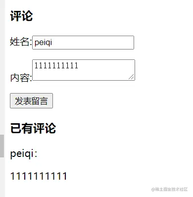 将姓名和内容填写好后,就可以提交评论了。