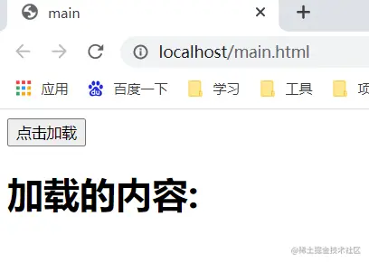 然后新建一个空白页面(main.html),包含触发 Ajax 事件的按钮 ,以及 id 为 “content” 的
