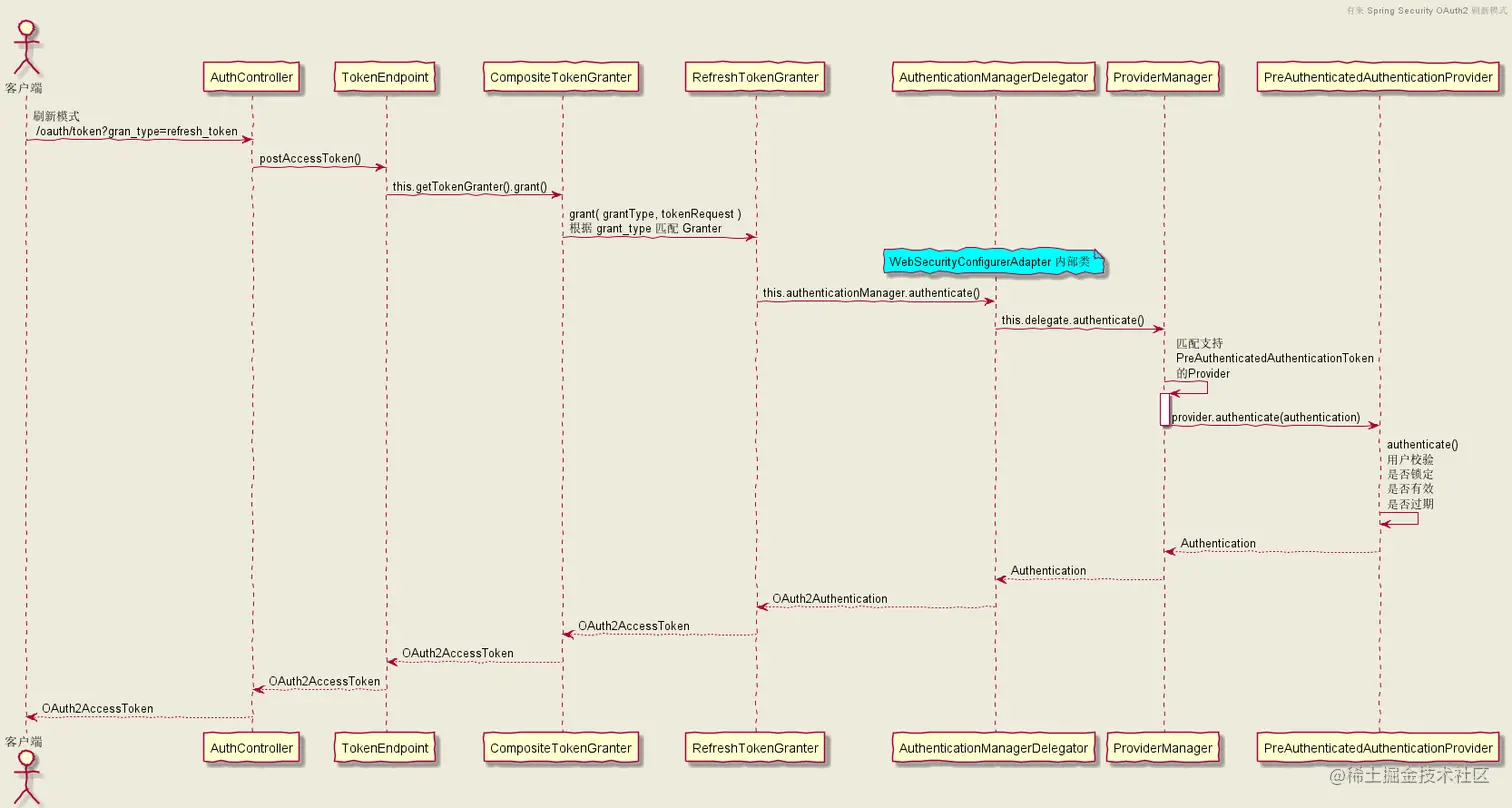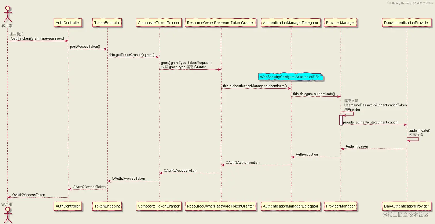 下面密码授权模式时序图贴出关键类和方法,断点走几遍流程就应该知道流程。