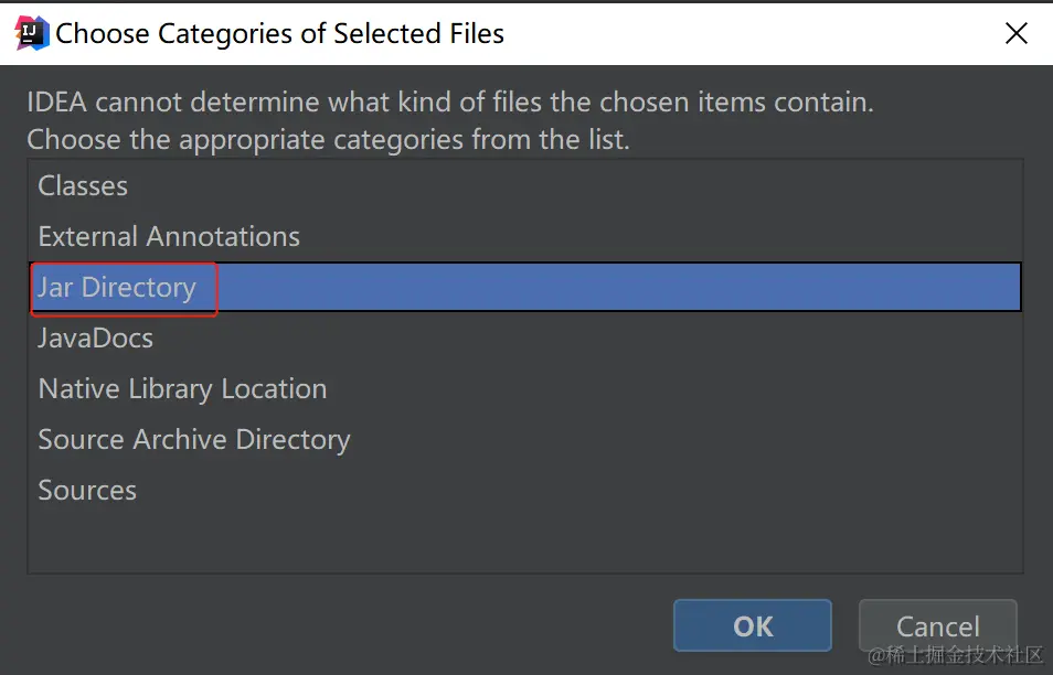 选中“Jar Directory”,选择OK,配置文件夹路径完成随后进入下一步操作