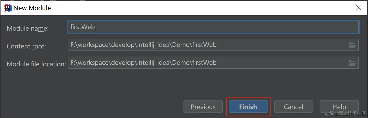 Next随后输入工程名称,选择Finish完成工程创建