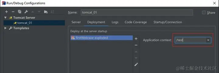 选中对应的Web项目,在右侧选项卡中的“Application context”处设置项目的访问路径,也可以不填