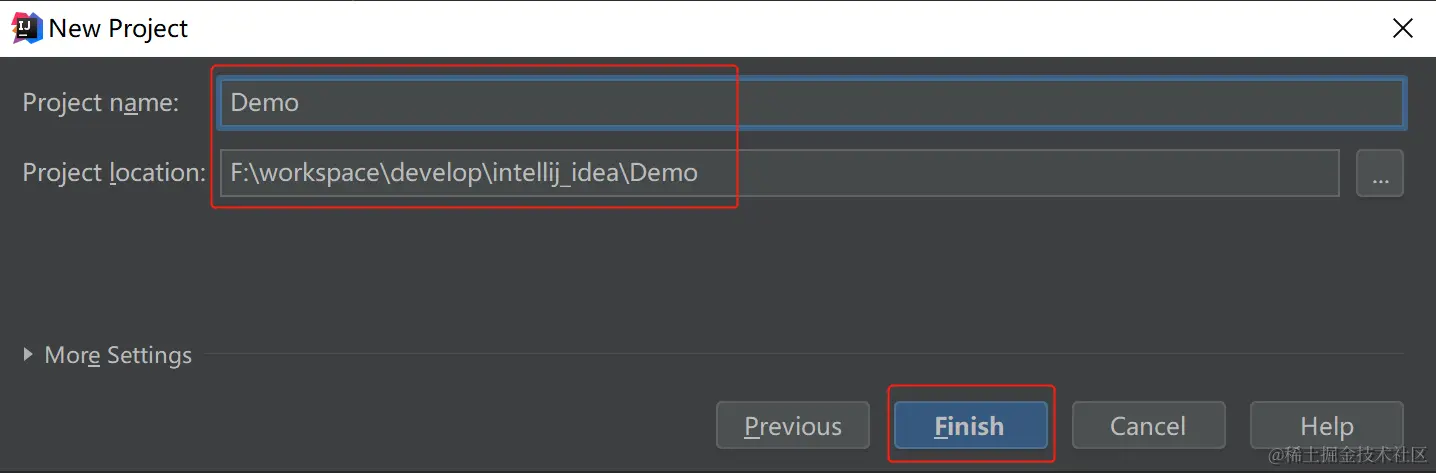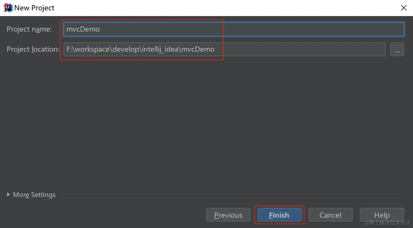选择next,随后输入 project名称和对应的项目存放位置,点击finish完成项目创建