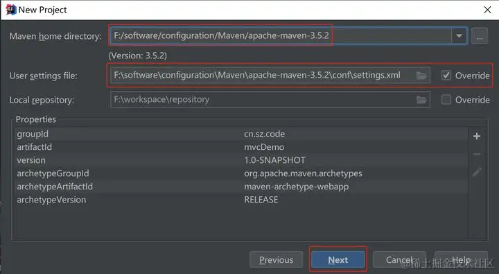 点击Next,随后选择相应的maven版本,设定指定的maven仓库设定的settings.xml配置文件