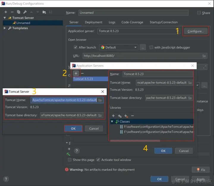 添加已安装的Tomcat路径,随后选中配置即可