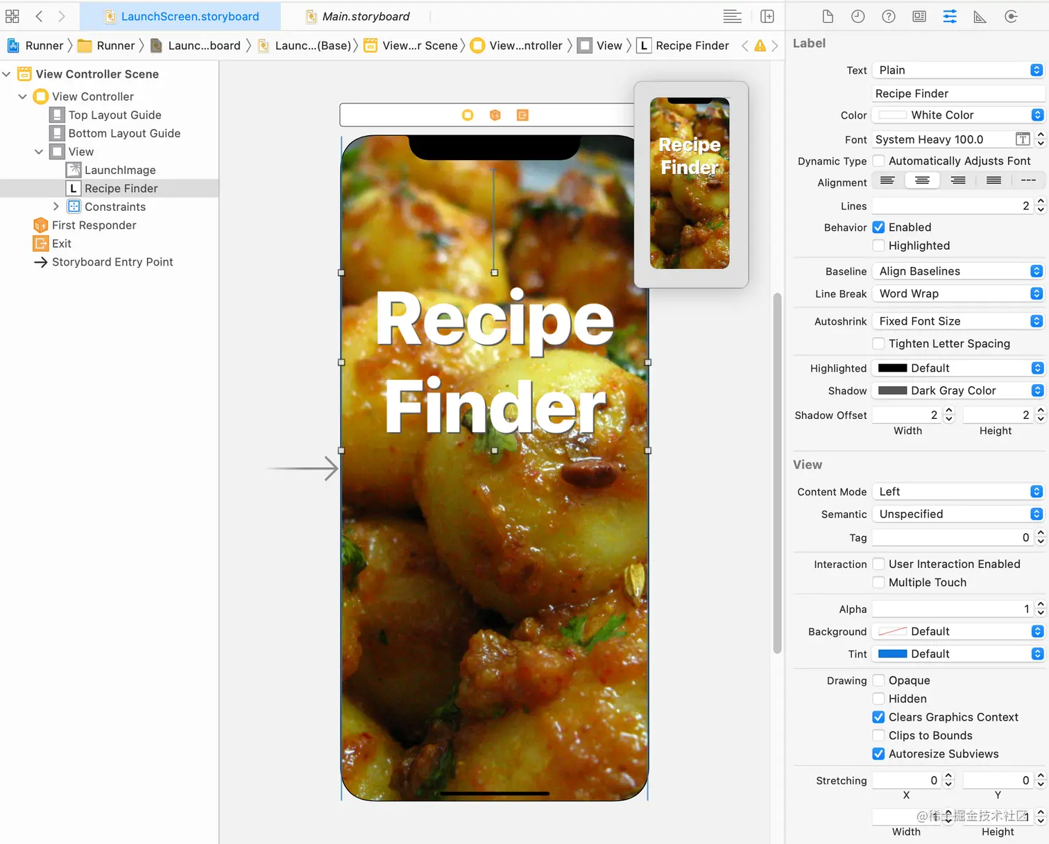 现在,LaunchScreen.storyboard 中的UIImageView使用了你之前添加到资产目录中的启动图片。应用程序在启动时加载这个故事板,并显示它,直到它完成加载。现在从Runner ▸ Runner ▸ LaunchScreen.storyboard打开这个故事板。