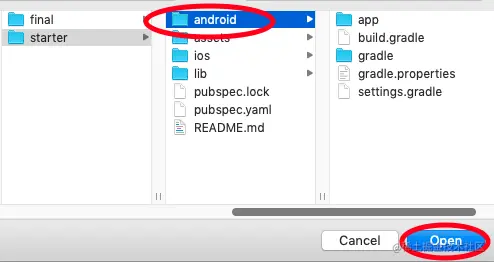 直接从Android Studio菜单中打开Android文件夹,选择文件▸打开,然后导航到你项目的android文件夹。最后,点击打开。