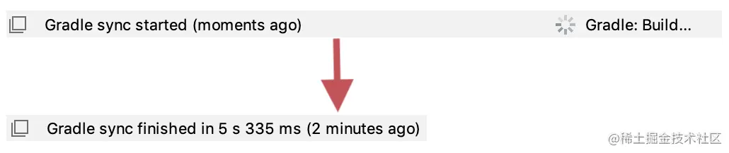 等待,直到Gradle同步完成。你的项目完成所需的时间可能有所不同。