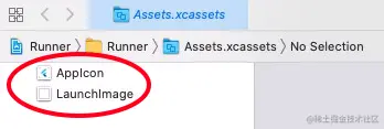 要查看应用程序的图标,请打开Runner ▸ Runner ▸ Assets.xcassets。这是一个资产目录,一种以配置感知的方式组织Xcode项目中的资产的方法。