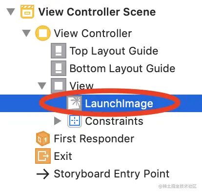 展开视图控制器场景▸视图控制器▸视图,选择LaunchImage。