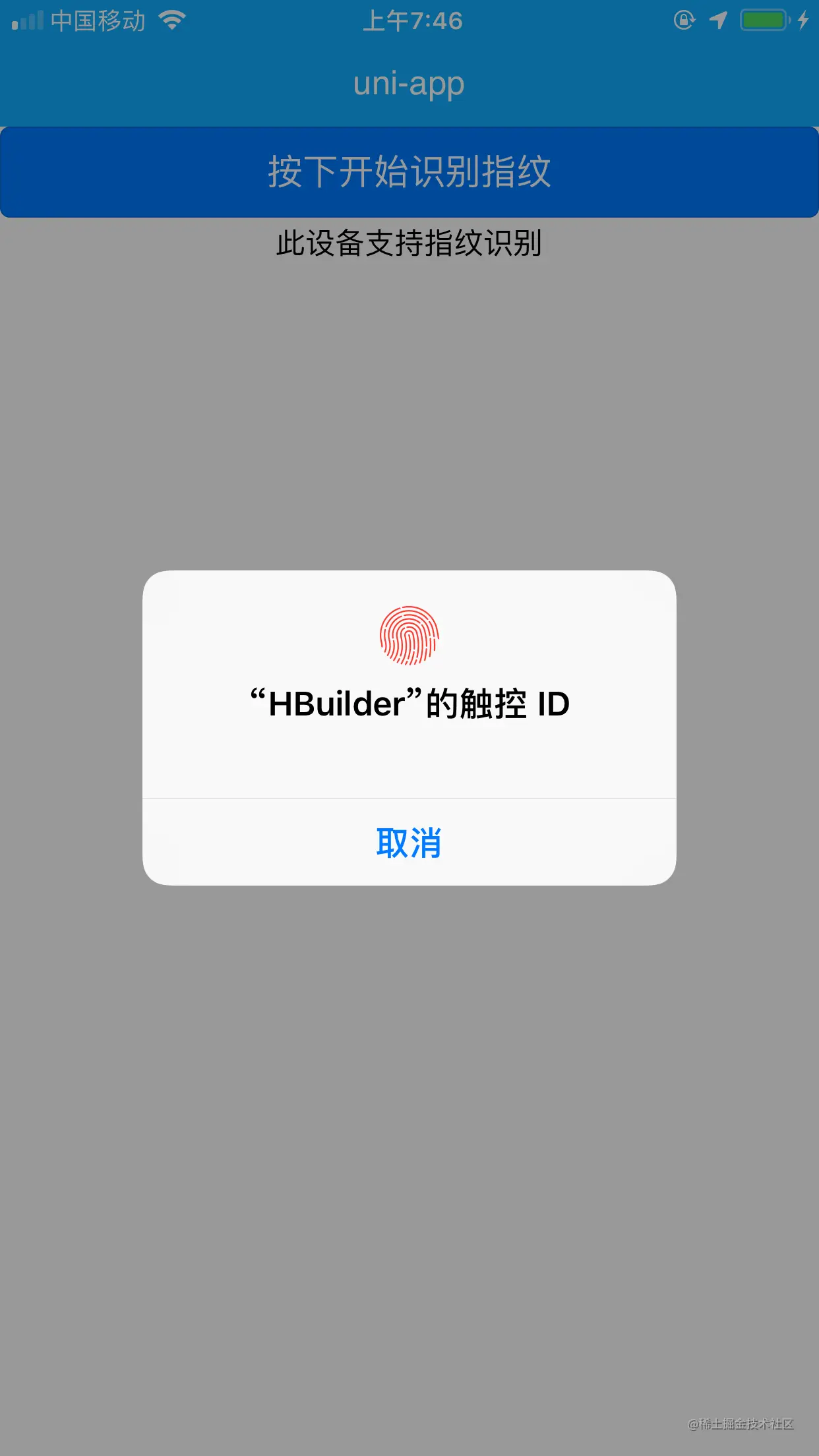 App端,打包时记得配指纹识别模块。